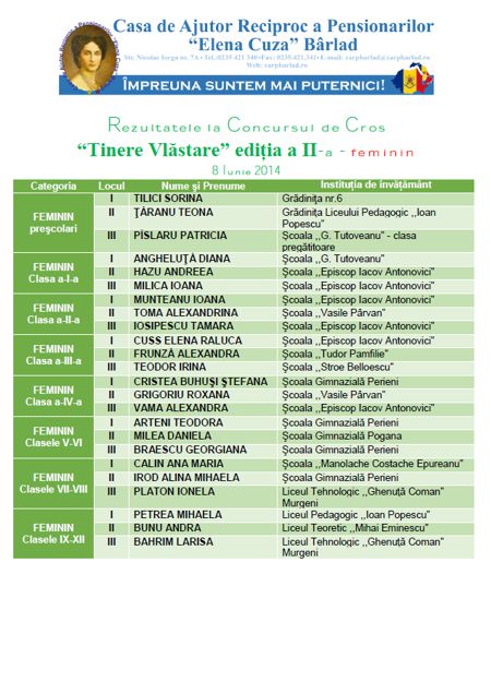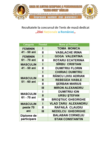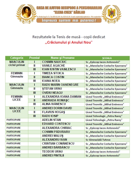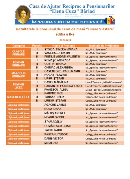 Rezultatele la Concursul de Tenis de masă din 28 februarie 2014