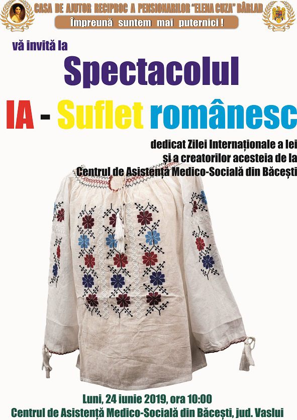 La sfârșitul anotimpului de toamnă, în data de 27 noiembrie, într-o zi de miercuri, Asociația Casa de Ajutor Reciproc a Pensionarilor ,,Elena Cuza’’ din Bârlad, împreună cu Episcopia Hușilor, a organizat o întâlnire de suflet ce a avut-o în prim plan pe interpreta de muzică populară Veta Biriș. Este vorba despre un spectacol în cinstea tradițiilor românești, în cinstea zestrei noastre culturale, cu ocazia sărbătoririi Zilei Naționale a României.