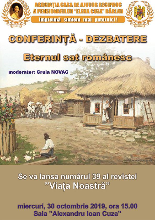 Conferința-dezbatere „Eternul sat românesc”, ce a avut loc miercuri, 30 octombrie, în incinta Casei de Ajutor Reciproc a Pensionarilor ,,Elena Cuza’’, sala „Al. I. Cuza”, a fost dedicată, după cum putem observa încă din titlu, Satului Românesc. Putem spune că motivul pentru dezvoltarea unei expuneri pe această temă este cu atât mai întemeiat cu cât anul 2019 a fost declarat ,,An omagial al satului românesc (al preoților, învățătorilor și primarilor gospodari)’’. Deoarece o simplă expunere nu ar fi fost suficientă pentru a acoperi bogăția informației legată de acest subiect, redacția revistei Casei - ,,Viața Noastră’’ - a hotărât să dedice numărul 39 Satului Românesc. Cu...