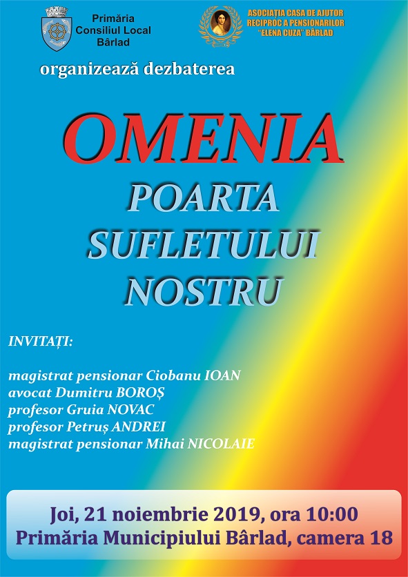 Asociația Casa de Ajutor Reciproc a Pensionarilor „Elena Cuza” a organizat o dezbatere pe această temă: „Omenia-poarta sufletului nostru”, cu oameni care au ales să-și deschidă poarta sufletului (magistrat pensionar Ciobanu Ioan, avocat Dumitru Boroș, profesorul Gruia Novac, alături de președintele Case...