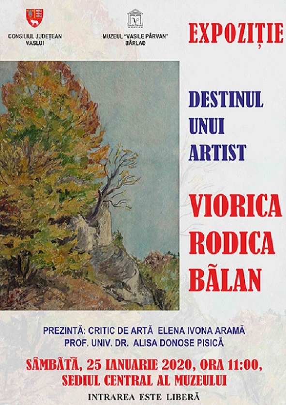 Muzeul ”Vasile Pârvan” Bârlad, acum la început de an, vă propune spre vizionare o extrem de interesantă expoziție de artă plastică organizată sub genericul „Destinul unui artist” – Viorica Rodica Bălan. Autoarea lucrărilor, deși a plecat de ceva timp din această lume, și-a exprimat încă din timpul vieții, dorința ca o parte din lucrările ei să fie să fie donate unor muzee. Așa se face că, la ora acuală, picturi semnate de ea se găsesc în muzeul din Botoșani, la Complexul Național Moldova Iași și începând din anul 2019 și la Muzeul din Bârlad. Spirit profund, atât ca artist, cât și ca om, pictorița a înțeles că muzeul este printre puținele instituții, care poate asigura posteritatea unui artist.