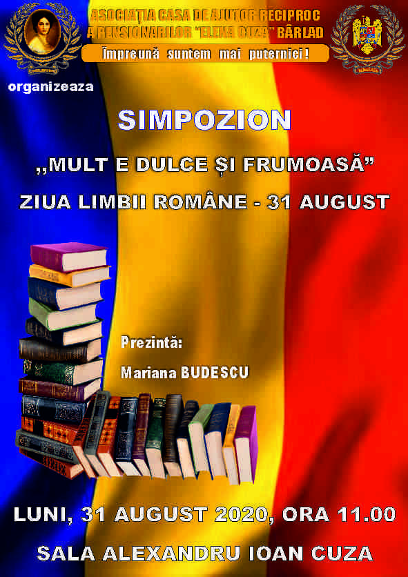 Miercuri, 29 Iulie, cu ocazia Zilei Imnului Național al României, Asociația Casa de Ajutor Reciproc a Pensionarilor „Elena Cuza” din Bârlad a organizat simpozionul „IMNUL NAȚIONAL AL ROMÂNIEI, CEL MAI IUBIT CÂNTEC AL NAȚIUNII”, desfășurat în Sala Alexandru Ioan Cuza, cu respectarea normelor de igienă și distanțare impuse de Starea de Alertă.