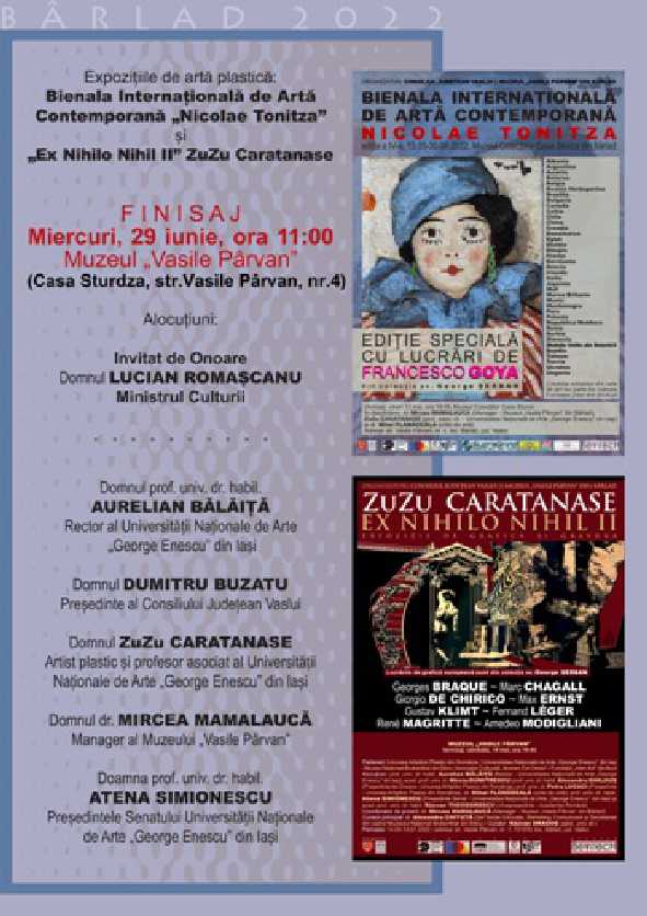Bienalele, după cum spunea criticul de artă Mihai Plămădeală, sunt expoziții de anvergură, organizate regulat, acestea ajungând, la ora actuală, să definească însăși arta contemporană, lucru care se verifică din plin și în cazul evenimentului propus de muzeul bârlădean.