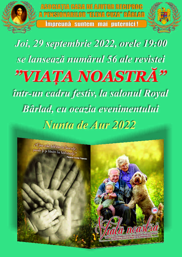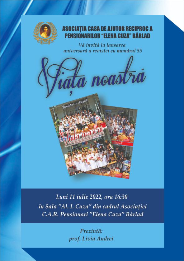 Luni, 11 iulie 2022, ora 16.30, va avea loc lansarea aniversară a revistei ”VIAÈšA NOASTRÄ‚” cu numărul 55.