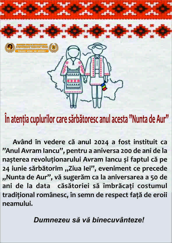 În atenția cuplurilor care sărbătoresc anul acesta ”Nunta de Aur”