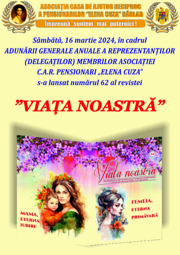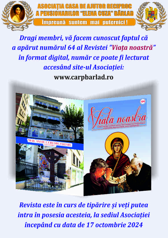 Dragi membri, vă facem cunoscut faptul că a apărut numărul 64 al Revistei ”Viața noastră”.