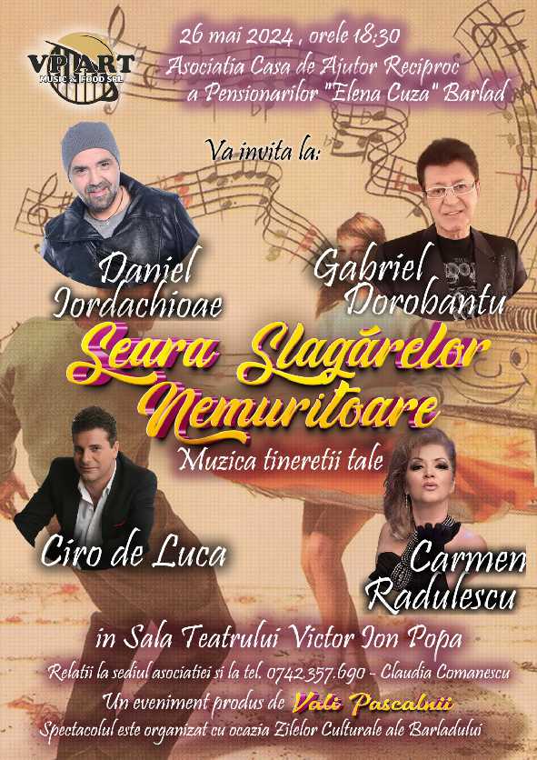 Asociația Casa de Ajutor Reciproc a Pensionarilor ”Elena Cuza” Bârlad invită membrii și nemembrii, simpatizanți ai indrăgitului interpret de muzică populară, George Forcos PALADE, la lansarea cărții ”O viață, o cale, un destin”, eveniment ce va avea loc în cadrul Zilelor Culturale ale Municipiului Vaslui.