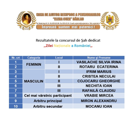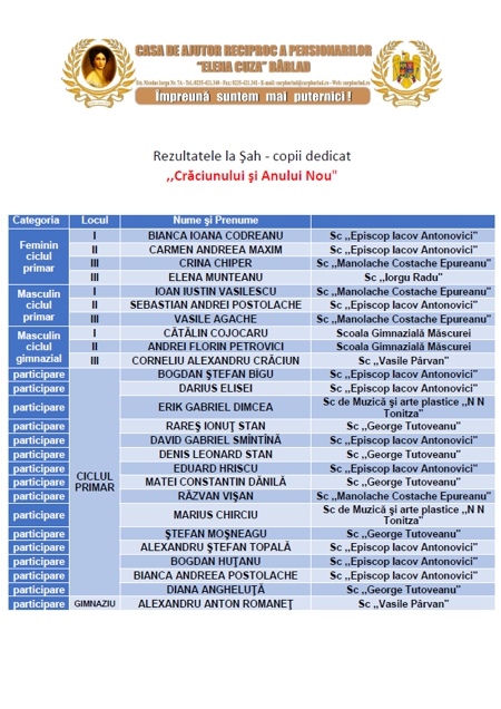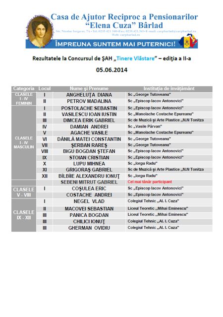 Rezultatele la Concursul de Șah din 28 februarie 2014