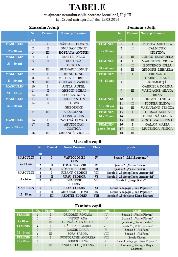 Rezultatele la Concursul de Tenis de masă din 28 februarie 2014