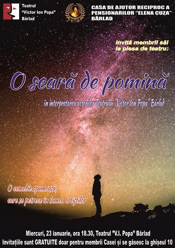 Casa de Ajutor Reciproc a Pensionarilor ,,Elena Cuza’’ din Bârlad, Primăria și Consiliul Local Bârlad și Teatrul ,,Victor Ion Popa’’ au reușit să facă un gest deosebit în întâmpinarea sărbătorile de iarnă, anume aducerea la Bârlad a Cameratei Regale.