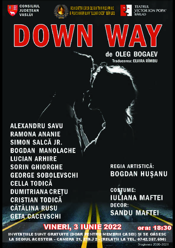 Textul acestui spectacol, scris de un dramaturg rus, aduce în fața publicului, la un mod onest și direct, relațiile dintre oameni. Probabil, nu mai este la modă altruismul, dar, cum suma viciilor unui om rămâne constantă, iar bunătatea nu este un viciu, ironic fiind, mă gândesc că a fost echivalată la un autoexamen de conștiință kafkian, cu un egoism frumos, propus undeva, cândva de Constantin Noica, devenind, astfel, cu toții, perfecți. Și, cum perfecțiunea nu suportă completare și grad de comparație, greșelile cotidiene personale ne lasă reci sau, măcar, răcoriți, ca după un duș fierbinte cu griji zilnice, picurate cu migală peste capul omului modern, a cărui oboseală este recompensată cu un somn adânc, care, uneori, cuprinde și un vis, de preferat frumos, unul țesut de propria închipuire. Împingem cu toții piatra lui Sisif - diferența este că unii sunt slabi și ceilalți pute...