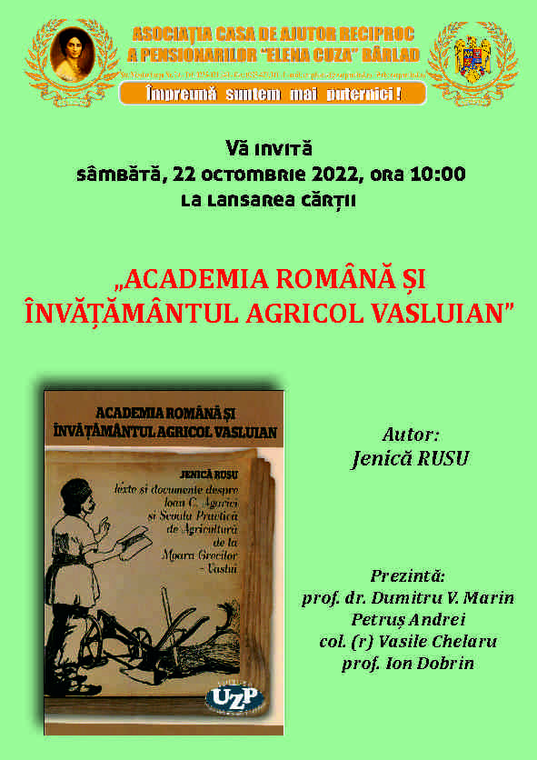 Lansare de carte - Academia română și învățământul agricol vasluian - Jenică Rusu