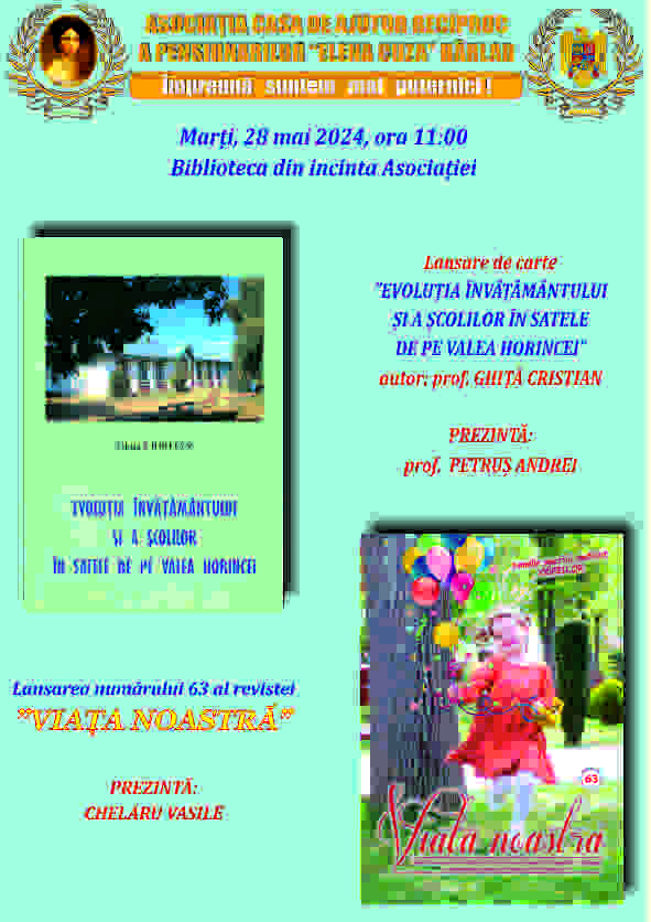 Lansarea numărului 62 al revistei Viața Noastră - https://www.carpbarlad.org/files/reviste/323_VN62_web.pdf